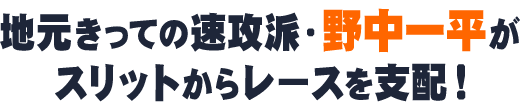 野中一平がV争いの先頭に立つ。2026年前期適用勝率は6.56で2期ぶりにA1級に返り咲いた。持ち味は恐れを知らないスタート力。とにかく早い。いったん勘をつかむと、これでもかとばかりに強気一辺倒のスリット攻勢を仕掛けてくる。それが地元の当地ならなおのことだ。2019年5月の「日本財団会長杯争奪戦」から前年の「中日スポーツ杯争奪 新春特別覇者決定戦」まで18節連続で賞典レースに進出。うち12優出2Vと実績は参加メンバーの中でも群を抜く。度胸満点、まさにイケイケの走りでシリーズを引っ張る。