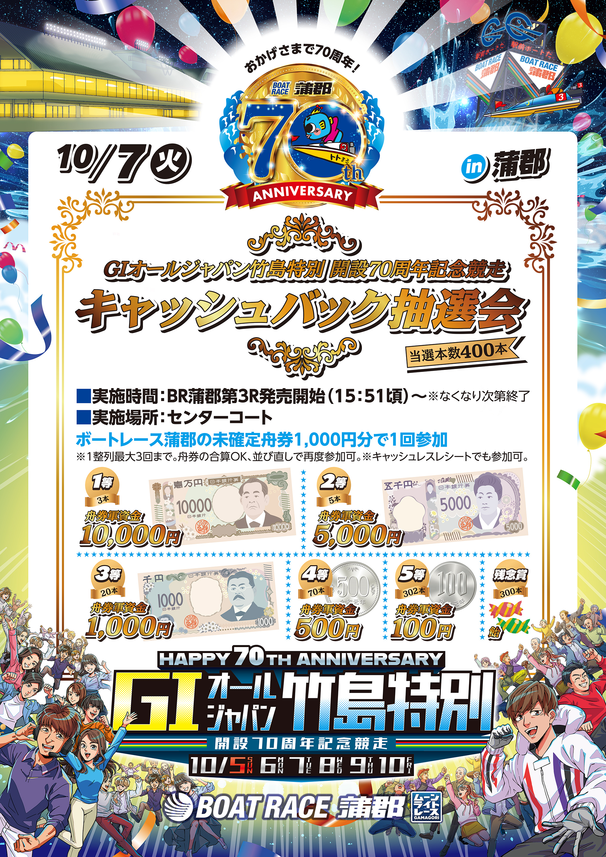 GⅠオールジャパン竹島特別 開設70周年記念競走キャッシュバック抽選会