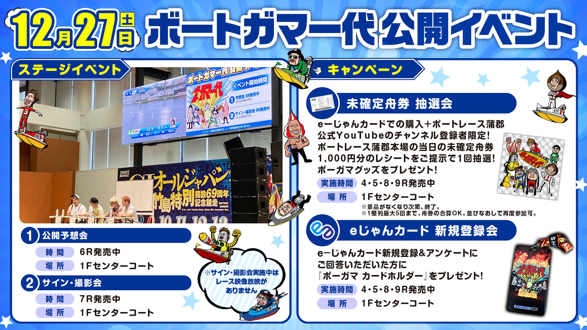 (賞品は変更、追加される場合があります。イベント開催に合わせて当日抽選会場が変更になる場合がありますので未確定舟券抽選会案内掲示板、出走表にてご確認ください。