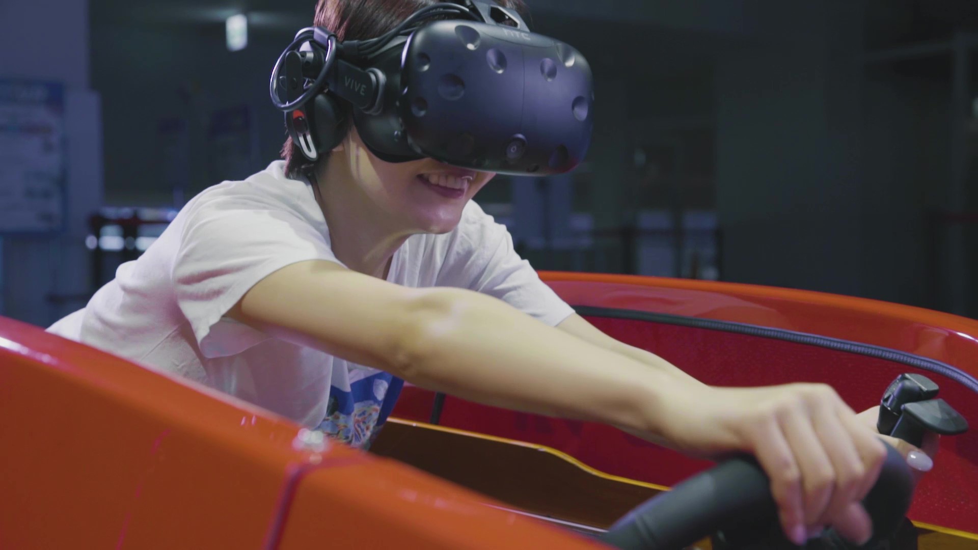 『BOATRACE VRスプラッシュバトル』は、ハンドルとスロットルレバーを操作して、VR映像内のボートを自在に操縦できる、新感覚のボートレース体験型VRアトラクションです。