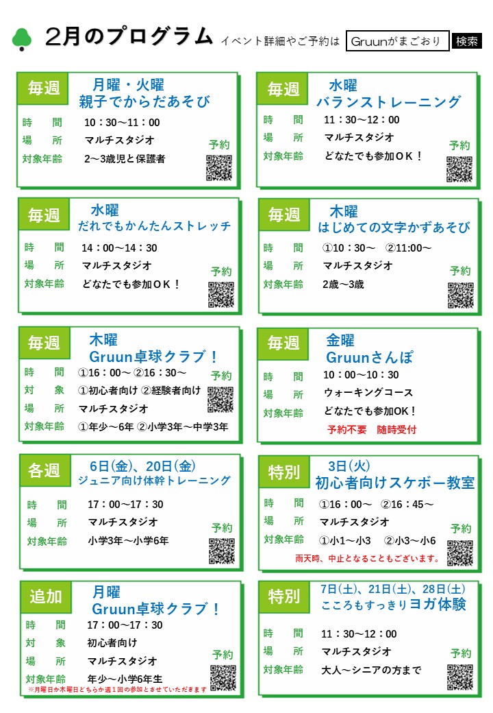 Gruunがまごおり2月イベントカレンダー